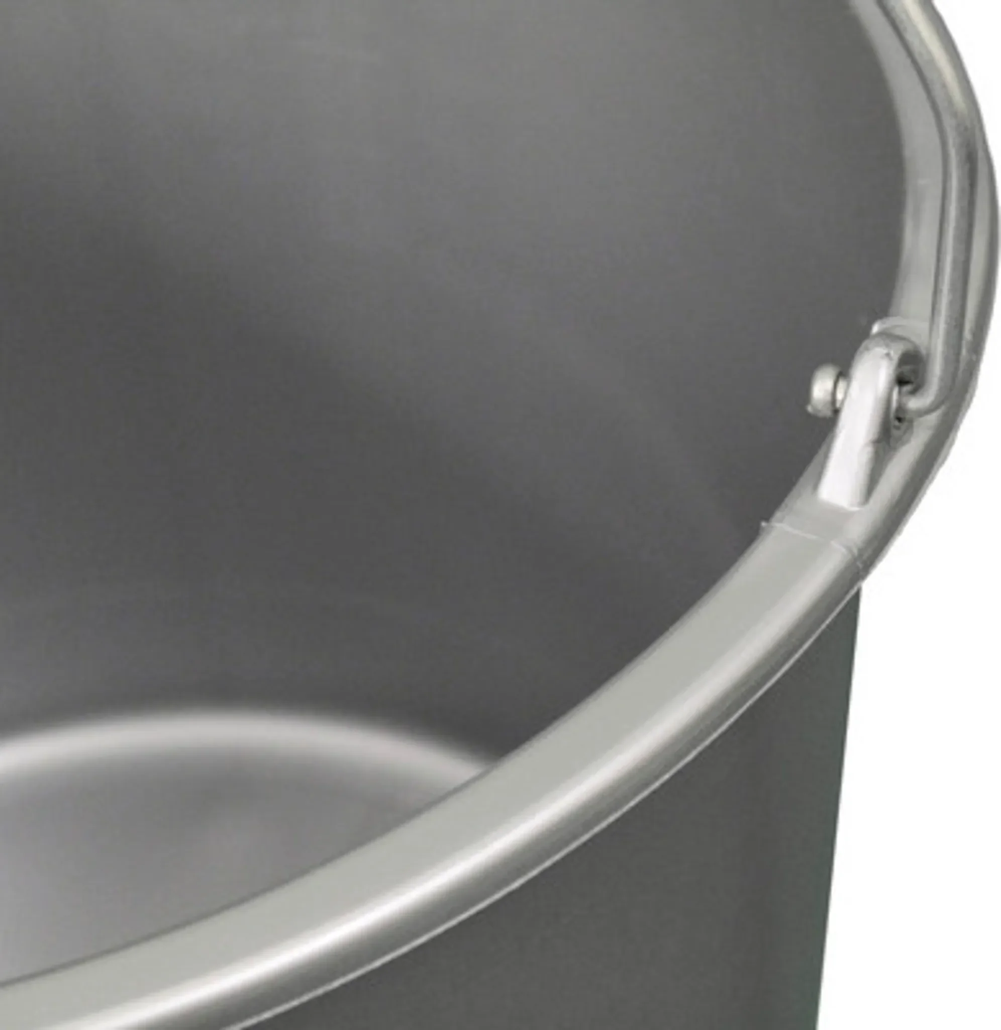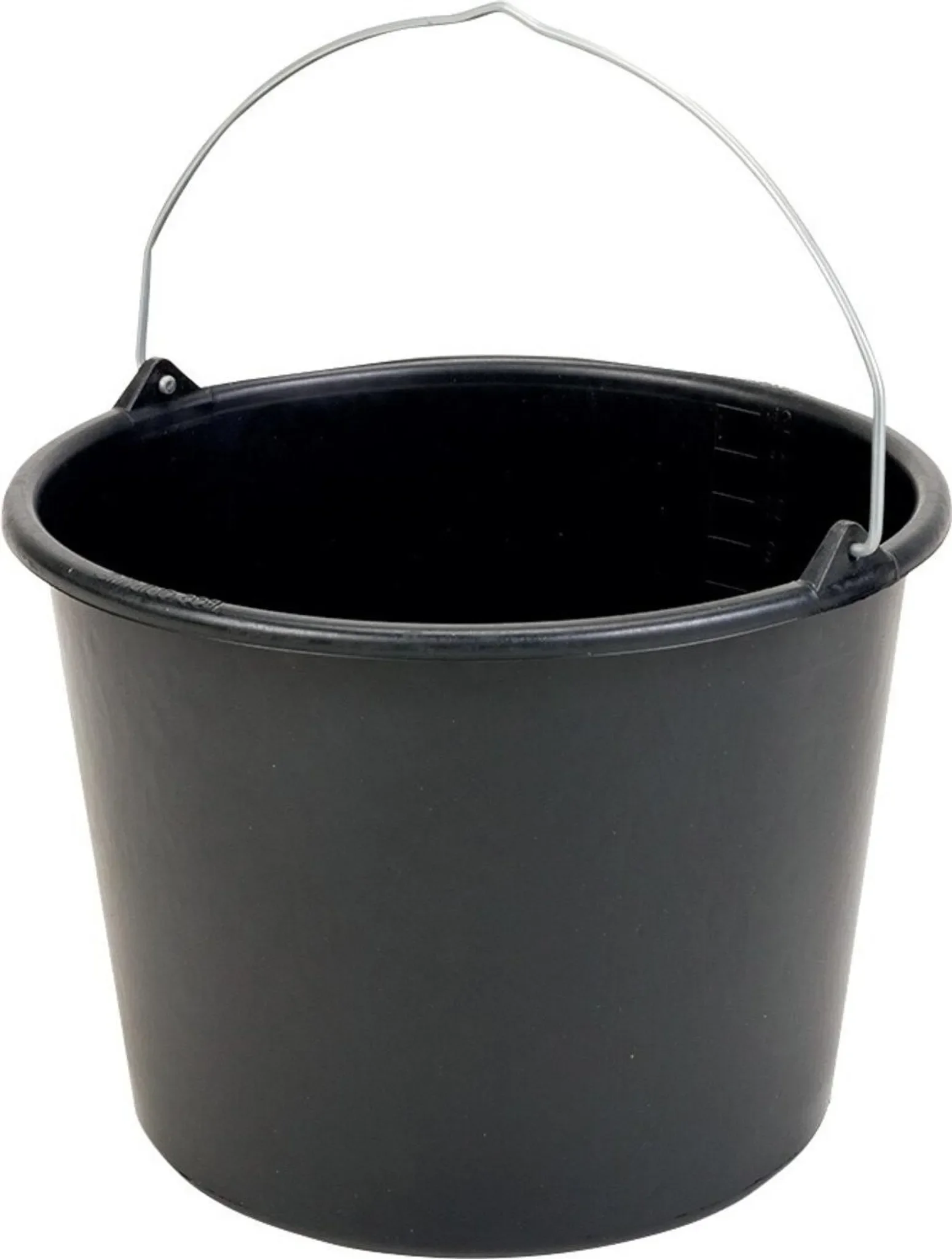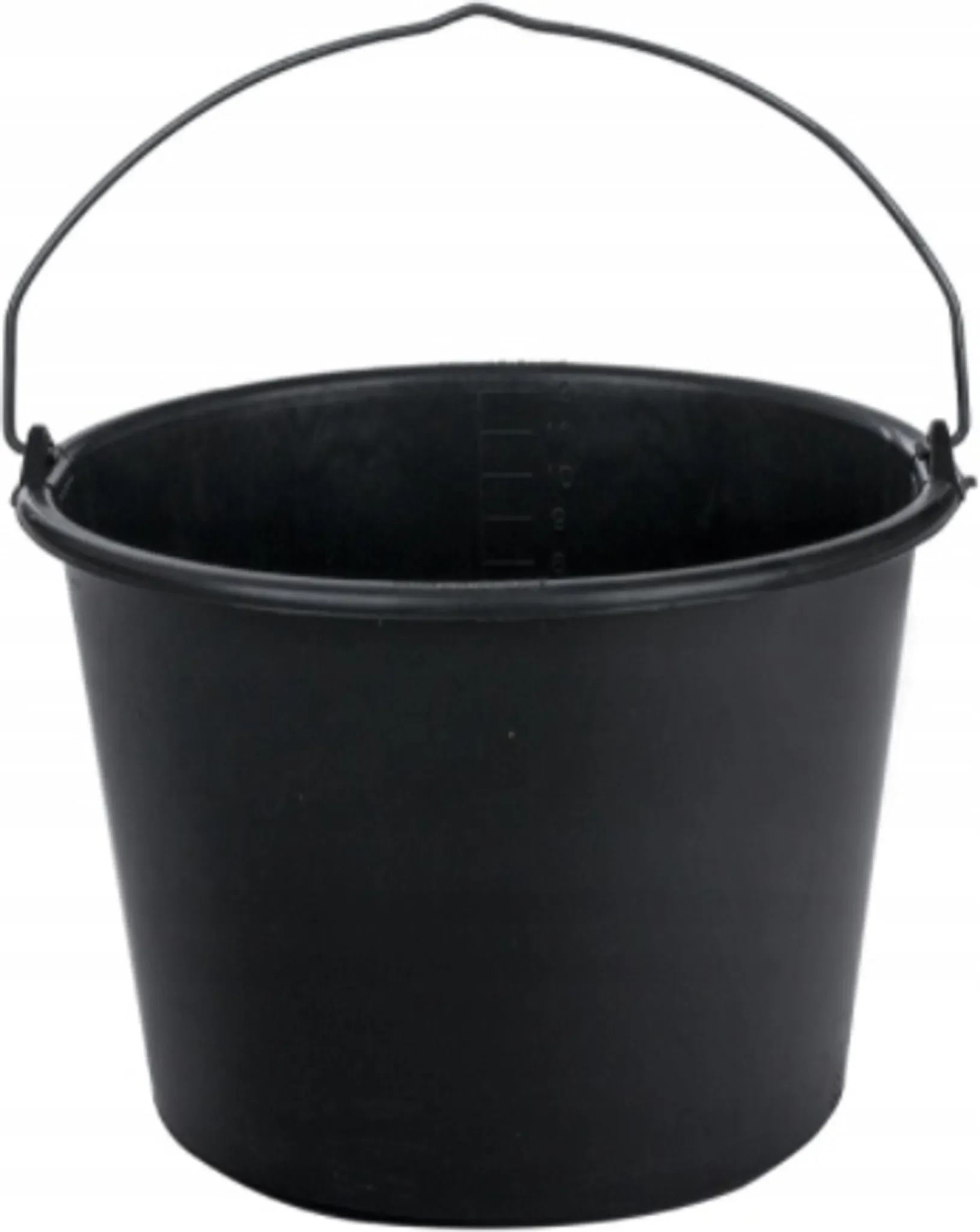 Der verstärkte Kreuzboden sorgt für zusätzliche Belastbarkeit, während der verzinkte Metallbügel einen sicheren Transport ermöglicht. Die integrierte Liter-Skala erleichtert das exakte Abmessen von Flüssigkeiten, Mörtel oder anderen Materialien.