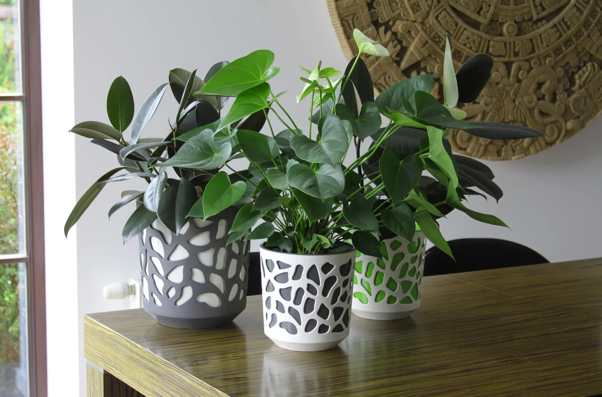 Der Blumentopf der Serie „DUET“ überzeugt durch sein außergewöhnliches, zweifarbiges Design. Der äußere Topf in Creme ist mit einem dekorativen, unregelmäßigen Lochmuster versehen und bildet einen stilvollen Kontrast zum separat eingesetzten Innentopf.