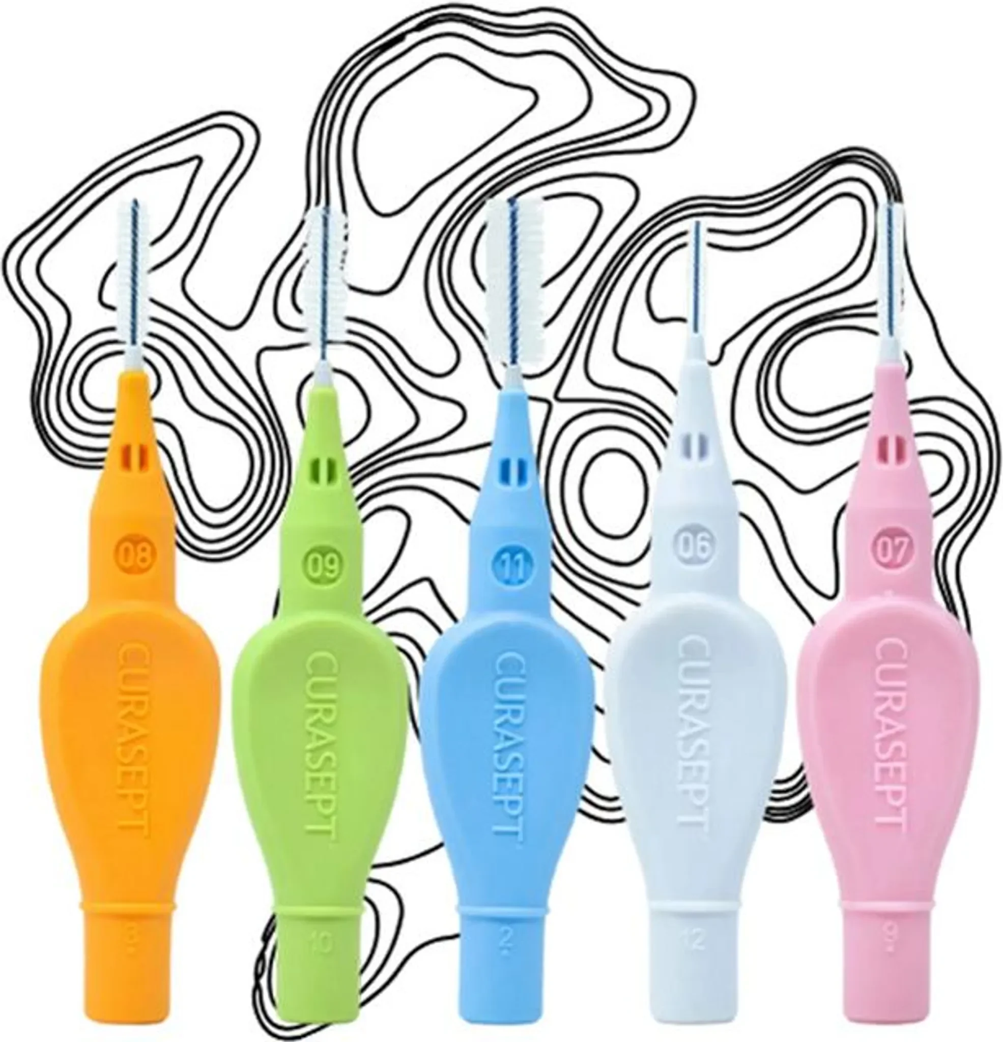 Die Curasept Proxi Prevention Mix Interdentalbürsten bieten eine präzise und schonende Reinigung der Zahnzwischenräume. Sie sind ideal für Menschen mit engen Zahnzwischenräumen, die mit herkömmlichen Zahnbürsten oder Zahnseide nicht vollständig erreichen können.