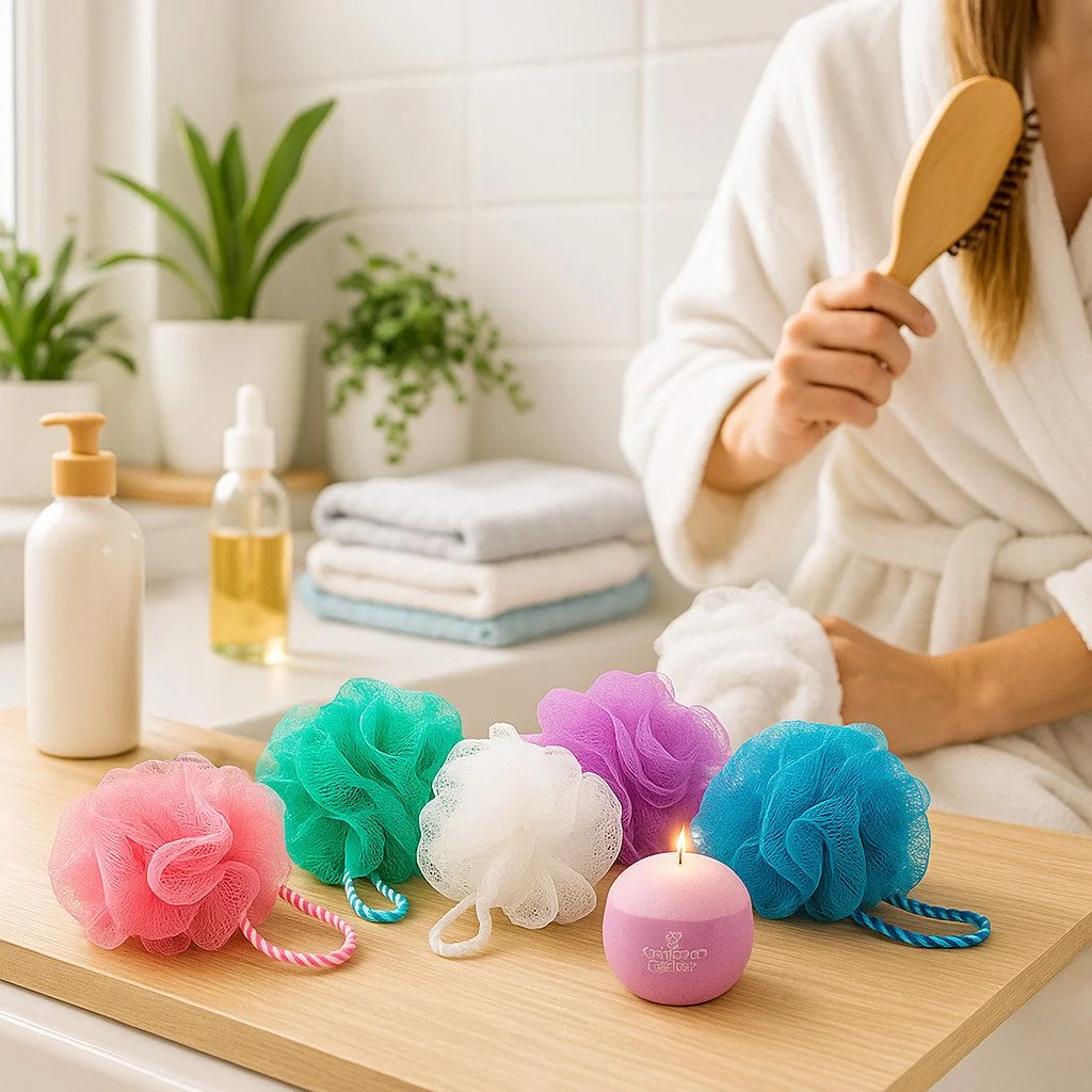 Dieser hochwertige Dusch- und Badeschwamm aus feinem Nylon vereint sanfte Reinigung mit einem angenehmen Massageeffekt. Er eignet sich ideal für die tägliche Körperpflege unter der Dusche, in der Badewanne oder im Spa.