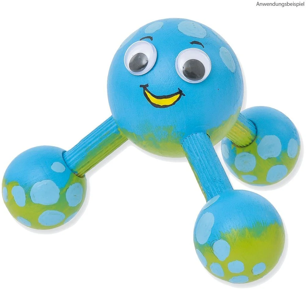 Dieses Massagegerät aus Holz ist ein handliches Bastelset für Kinder ab 6 Jahren. Es wird als komplettes Materialset geliefert, das die Kinder selbst zusammenbauen können. Die fertige Holz-Massagespinne misst ca. 9,5 × 7 cm und bietet spielerisch eine Massagefunktion.