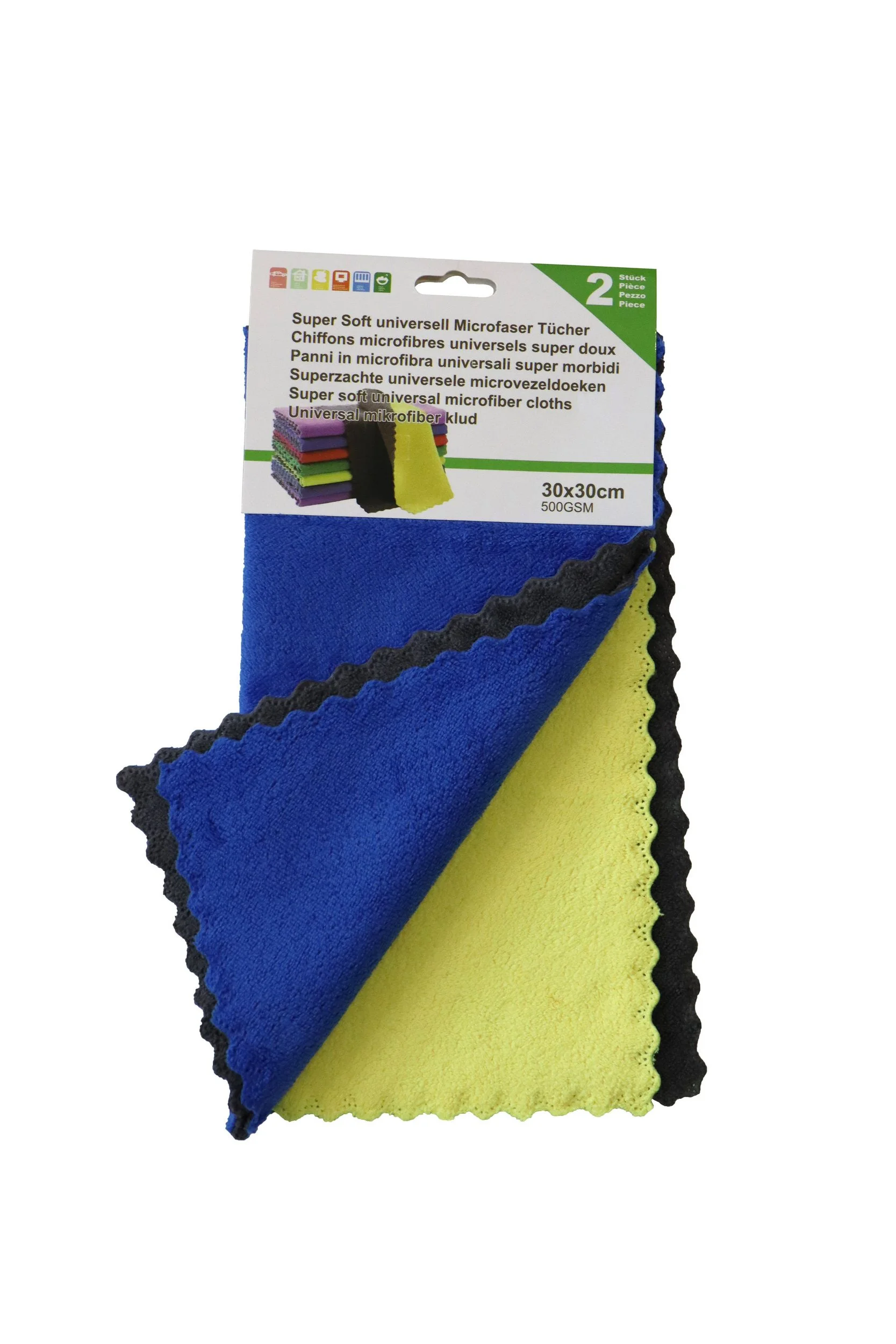Dank der hohen Grammatur von 500 g/m² überzeugen die Tücher durch eine sehr hohe Feuchtigkeitsaufnahme und effektive Schmutzbindung. Das handliche Format von 30 × 30 cm sorgt für komfortables Arbeiten, während der verstärkte Wellenrand mit Einfassband die Langlebigkeit unterstützt.