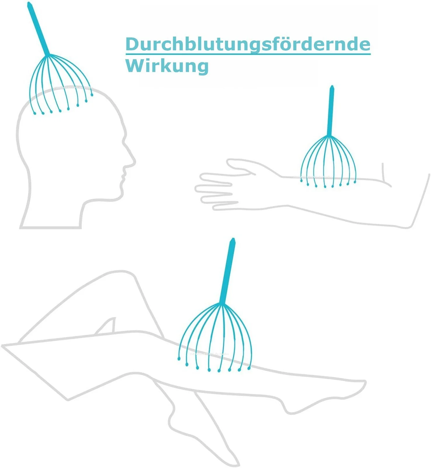Highlights: Flexibles Massagegerät für Kopf und Körper, 12 Arme für intensive Stimulation, ergonomischer Holzgriff, leicht und kompakt für unterwegs.